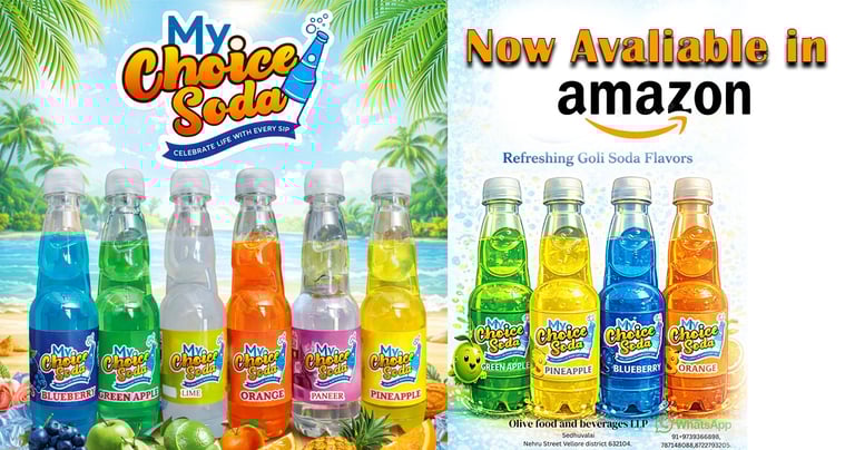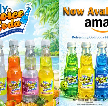 Welcome to My Choice Soda, a leading Goli Soda supplier in Vellore, Tamil Nadu. We specialize in premium Traditional and Pet bottle sodas that combine traditional charm with modern quality standards. Enjoy the authentic taste of Goli Soda with exciting modern flavors. My Choice Soda delivers strong fizz, refreshing taste, and nostalgic experience in every bottle.